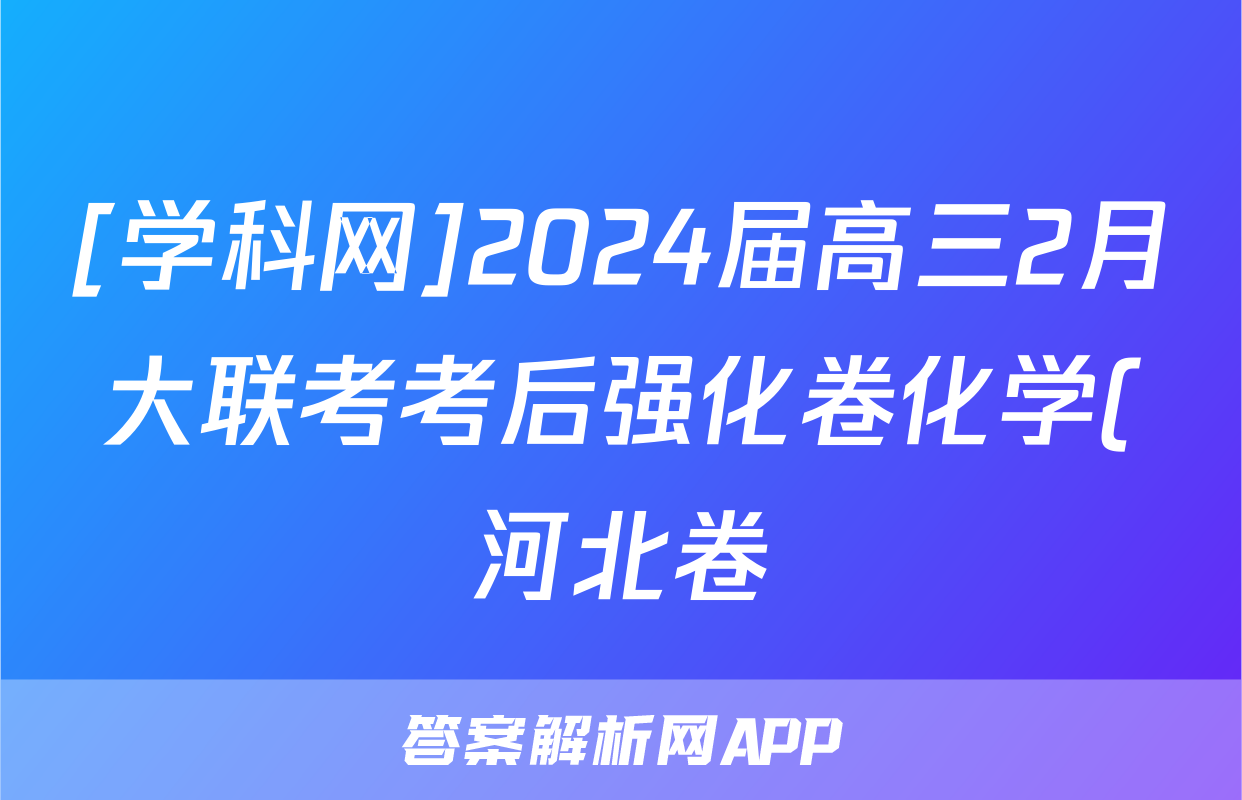 [学科网]2024届高三2月大联考考后强化卷化学(河北卷)试题正在持续更新,目前2026天舟高考答案网为大家整理了相关试题及答案,供大家查缺补漏,高效提升成绩。