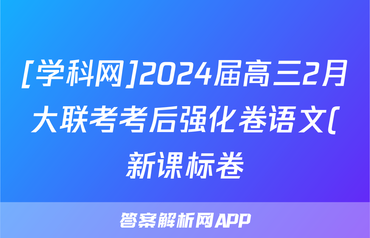 [学科网]2024届高三2月大联考考后强化卷语文(新课标卷)(新疆专用)答案正在持续更新,目前2026天舟高考答案网为大家整理了相关试题及答案,供大家查缺补漏,高效提升成绩。