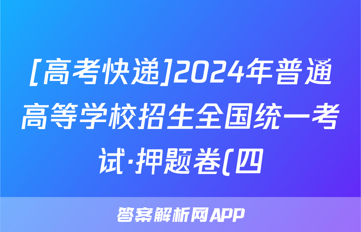 [高考快递]2024年普通高等学校招生全国统一考试·押题卷(四)4数学(新高考)试题正在持续更新,目前2026天舟高考答案网为大家整理了相关试题及答案,供大家查缺补漏,高效提升成绩。