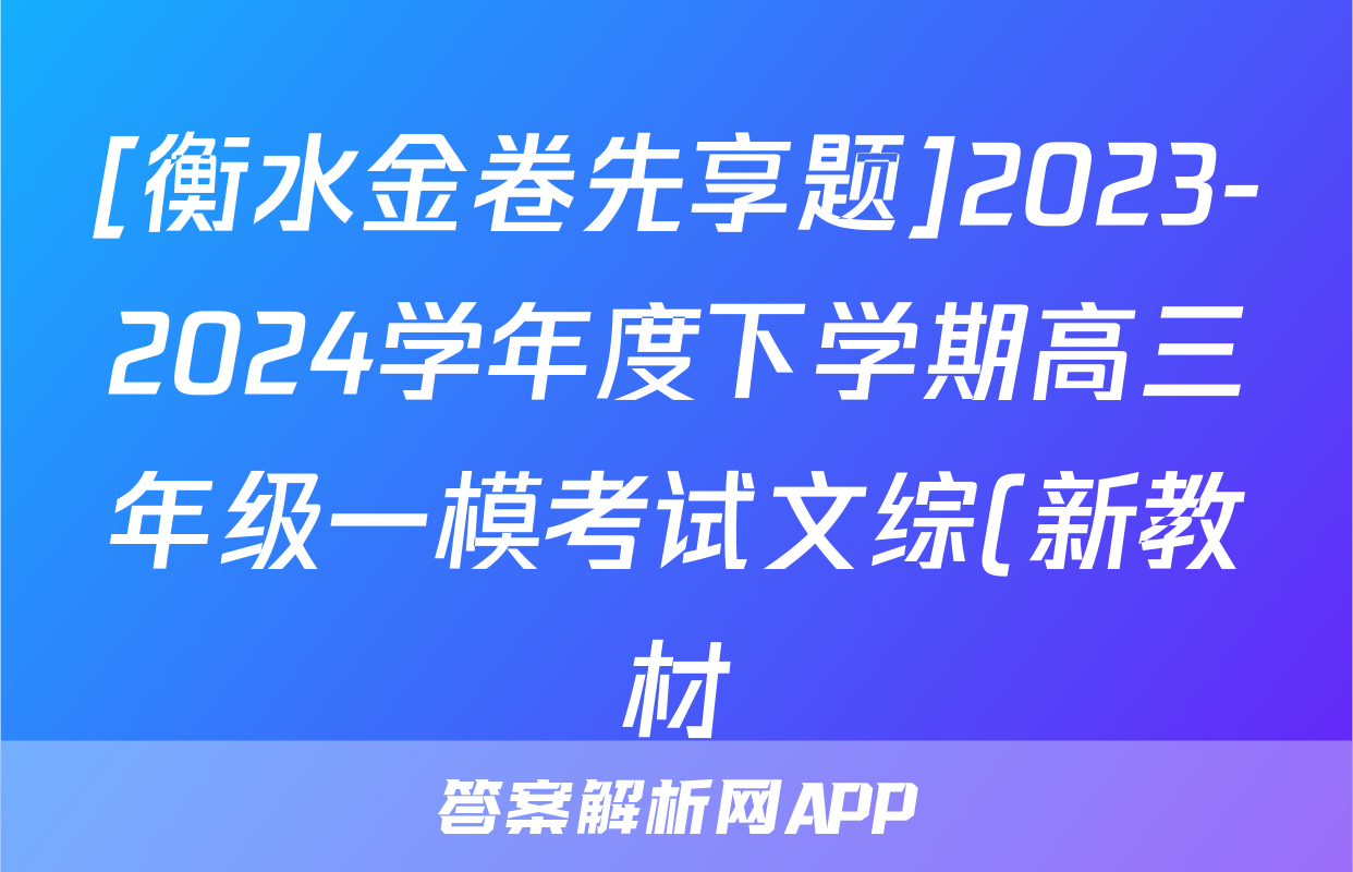 [衡水金卷先享题]2023-2024学年度下学期高三年级一模考试文综(新教材)试题正在持续更新,目前2026天舟高考答案网为大家整理了相关试题及答案,供大家查缺补漏,高效提升成绩。