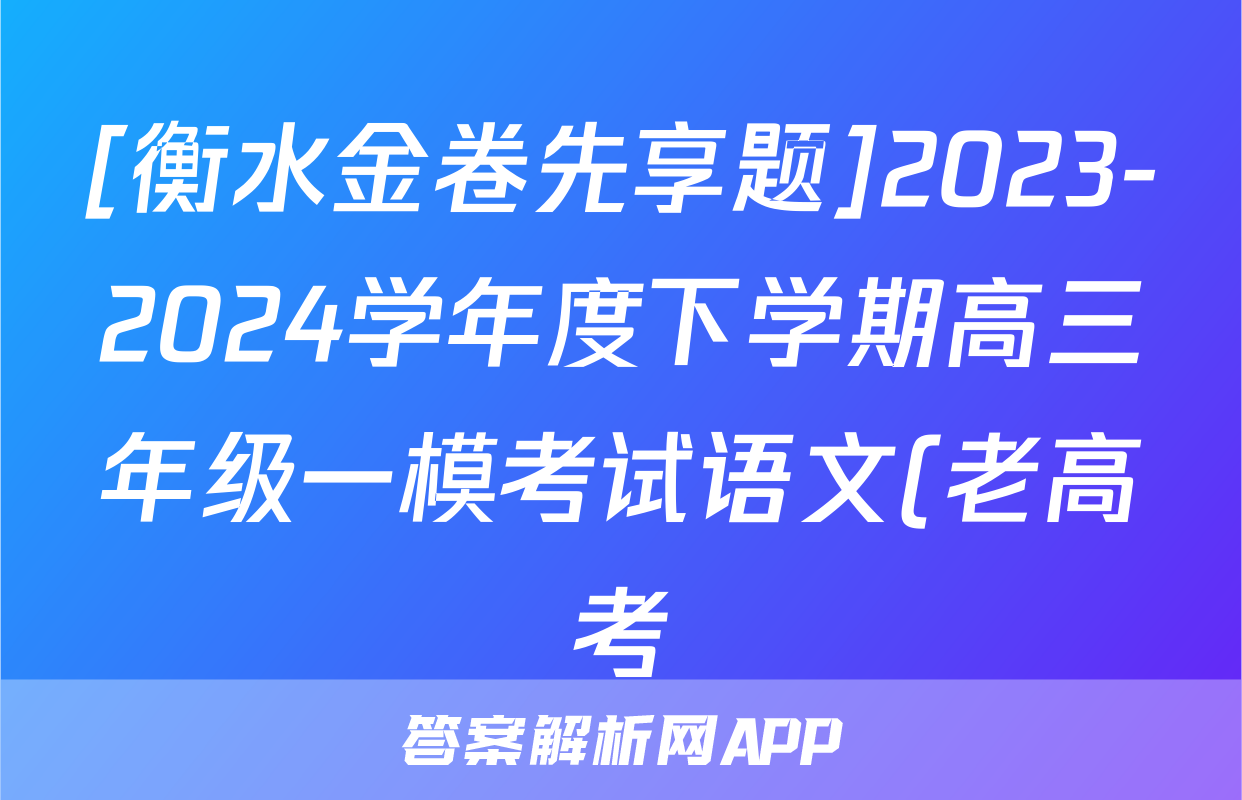 [衡水金卷先享题]2023-2024学年度下学期高三年级一模考试语文(老高考)试题正在持续更新,目前2026天舟高考答案网为大家整理了相关试题及答案,供大家查缺补漏,高效提升成绩。