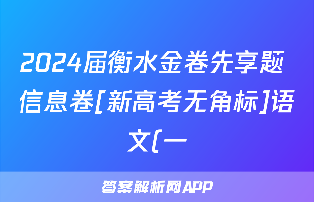 2024届衡水金卷先享题 信息卷[新高考无角标]语文(一)1试题正在持续更新,目前2026天舟高考答案网为大家整理了相关试题及答案,供大家查缺补漏,高效提升成绩。