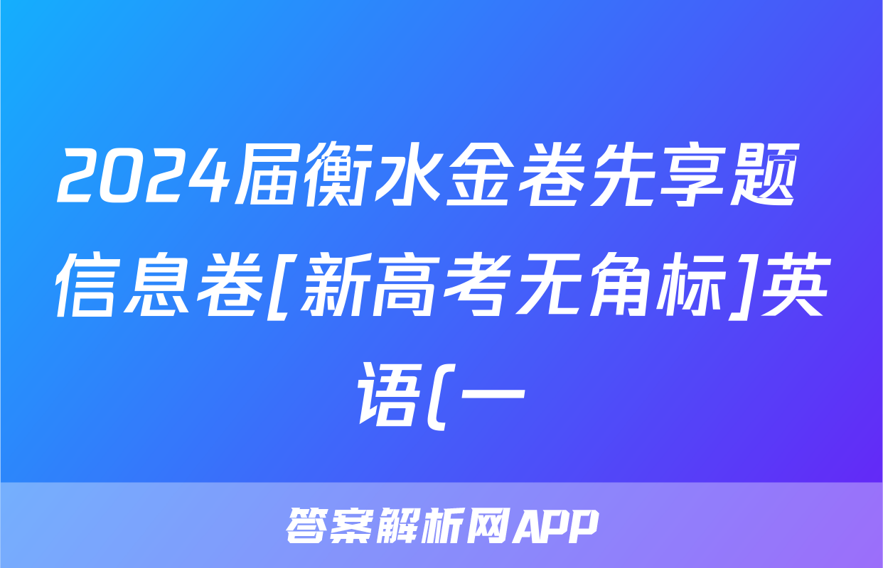 2024届衡水金卷先享题 信息卷[新高考无角标]英语(一)1答案正在持续更新,目前2026天舟高考答案网为大家整理了相关试题及答案,供大家查缺补漏,高效提升成绩。