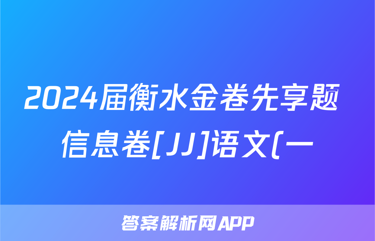 2024届衡水金卷先享题 信息卷[JJ]语文(一)1答案正在持续更新,目前2026天舟高考答案网为大家整理了相关试题及答案,供大家查缺补漏,高效提升成绩。