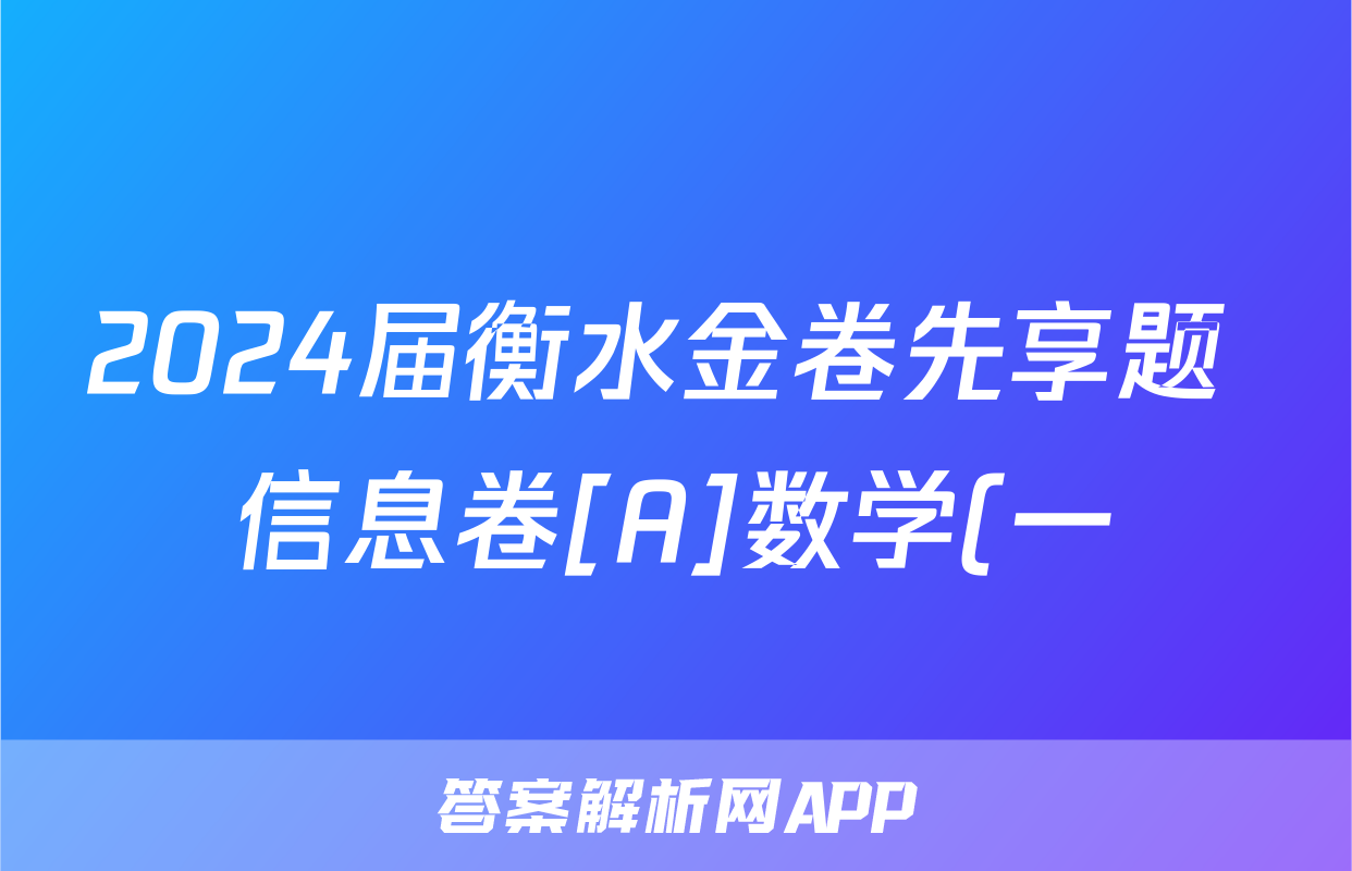 2024届衡水金卷先享题 信息卷[A]数学(一)1试题正在持续更新,目前2026天舟高考答案网为大家整理了相关试题及答案,供大家查缺补漏,高效提升成绩。
