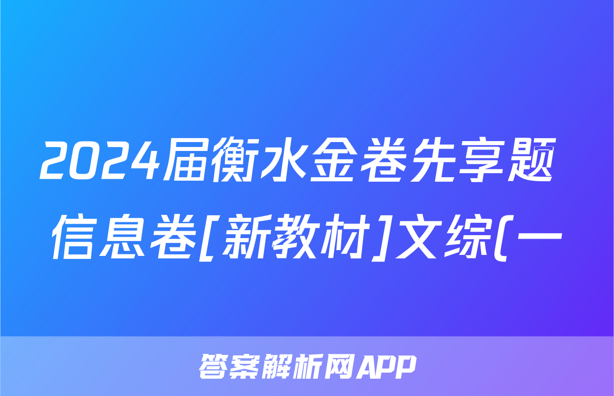 5、衡水金卷先享题答案2024文综1