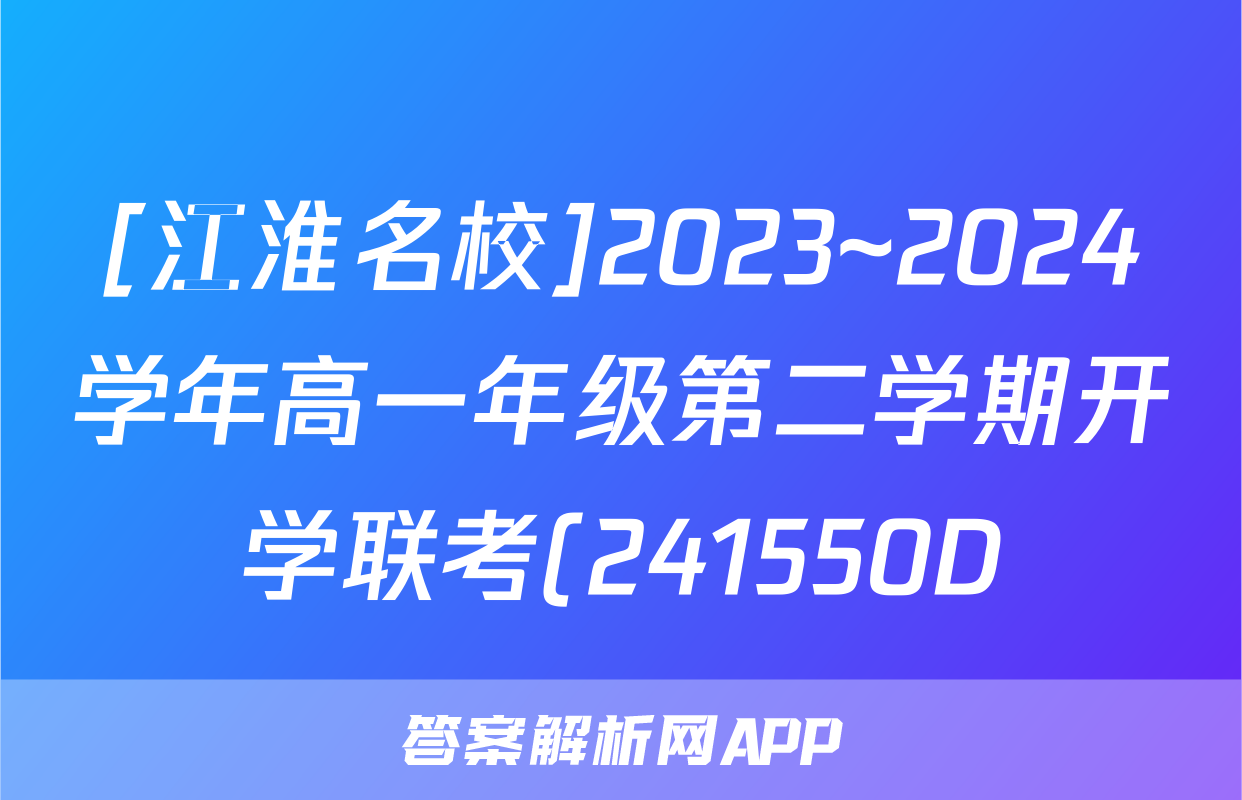 [江淮名校]2023~2024学年高一年级第二学期开学联考(241550D)地理试题正在持续更新,目前2026天舟高考答案网为大家整理了相关试题及答案,供大家查缺补漏,高效提升成绩。