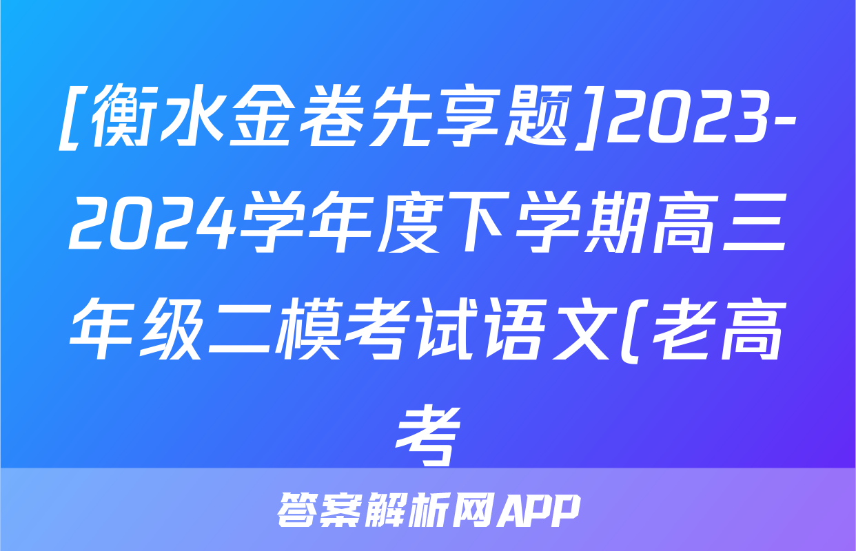 [衡水金卷先享题]2023-2024学年度下学期高三年级二模考试语文(老高考)试题正在持续更新,目前2026天舟高考答案网为大家整理了相关试题及答案,供大家查缺补漏,高效提升成绩。