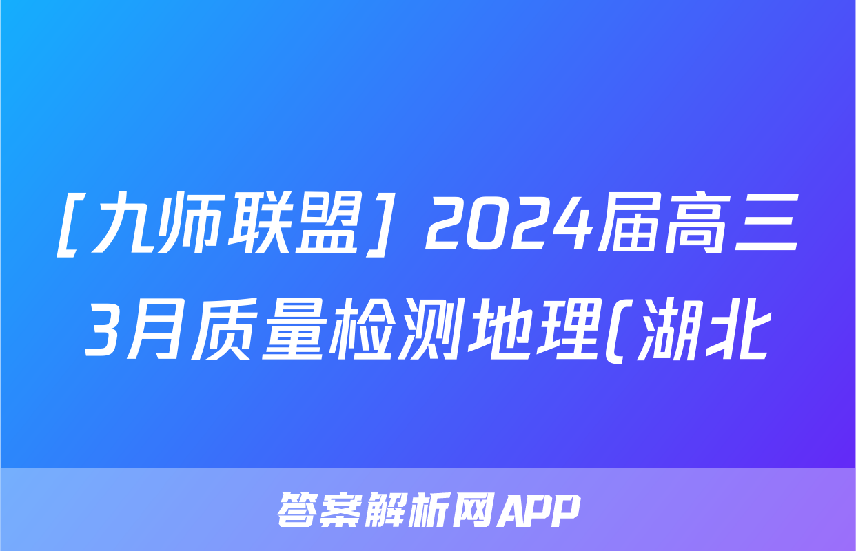 [九师联盟] 2024届高三3月质量检测地理(湖北)答案正在持续更新,目前2026天舟高考答案网为大家整理了相关试题及答案,供大家查缺补漏,高效提升成绩。
