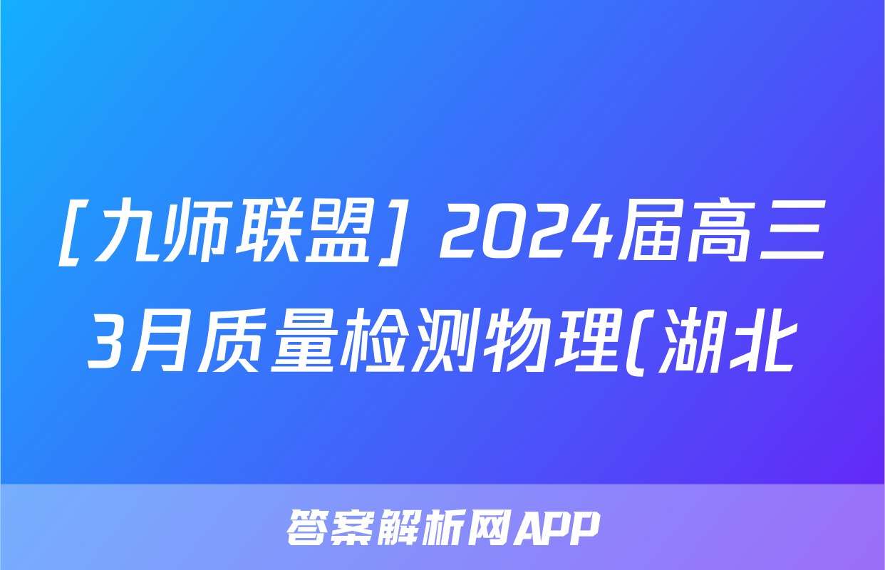 [九师联盟] 2024届高三3月质量检测物理(湖北)答案正在持续更新,目前2026天舟高考答案网为大家整理了相关试题及答案,供大家查缺补漏,高效提升成绩。