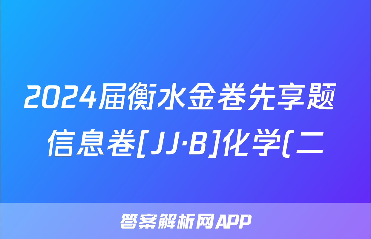 2024届衡水金卷先享题 信息卷[JJ·B]化学(二)2答案正在持续更新,目前2026天舟高考答案网为大家整理了相关试题及答案,供大家查缺补漏,高效提升成绩。