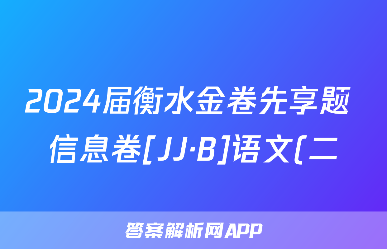 2024届衡水金卷先享题 信息卷[JJ·B]语文(二)2答案正在持续更新,目前2026天舟高考答案网为大家整理了相关试题及答案,供大家查缺补漏,高效提升成绩。