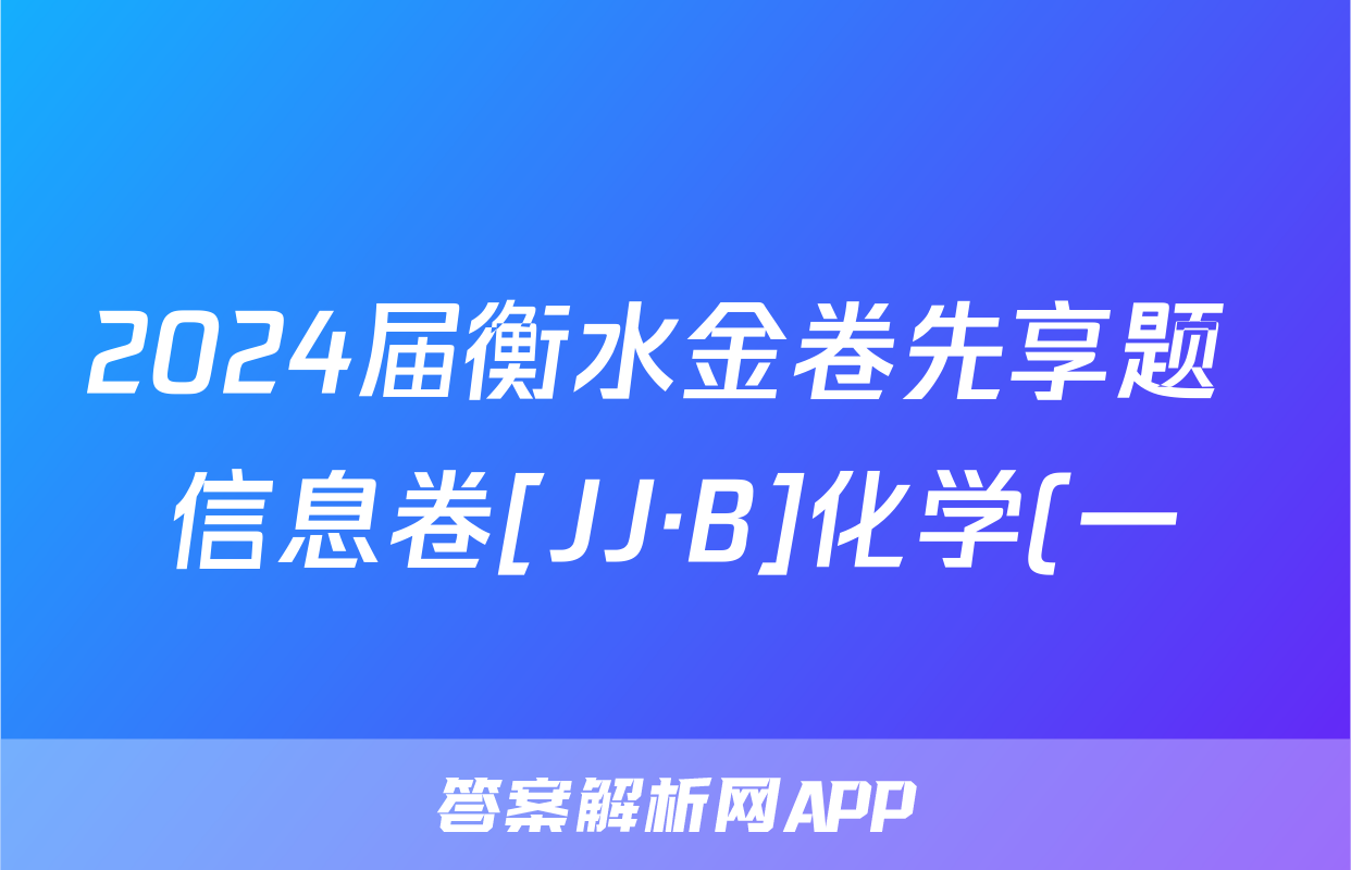 2024届衡水金卷先享题 信息卷[JJ·B]化学(一)1答案正在持续更新,目前2026天舟高考答案网为大家整理了相关试题及答案,供大家查缺补漏,高效提升成绩。