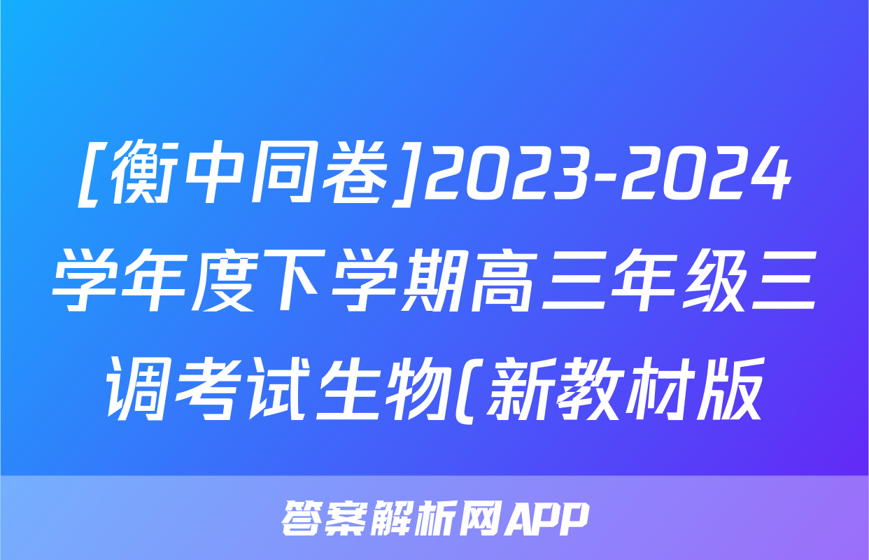 [衡中同卷]2023-2024学年度下学期高三年级三调考试生物(新教材版)答案正在持续更新,目前2026天舟高考答案网为大家整理了相关试题及答案,供大家查缺补漏,高效提升成绩。