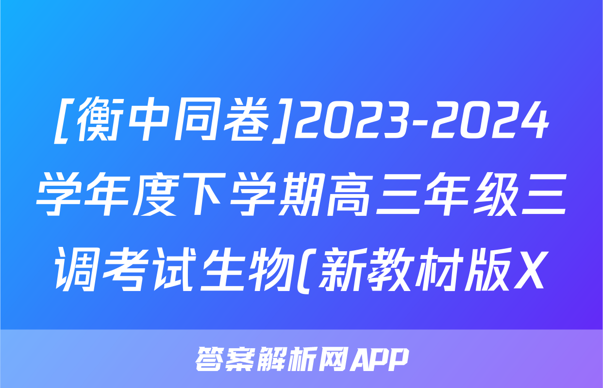 [衡中同卷]2023-2024学年度下学期高三年级三调考试生物(新教材版X)试题正在持续更新,目前2026天舟高考答案网为大家整理了相关试题及答案,供大家查缺补漏,高效提升成绩。