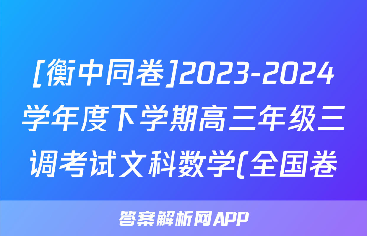 [衡中同卷]2023-2024学年度下学期高三年级三调考试文科数学(全国卷)试题正在持续更新,目前2026天舟高考答案网为大家整理了相关试题及答案,供大家查缺补漏,高效提升成绩。