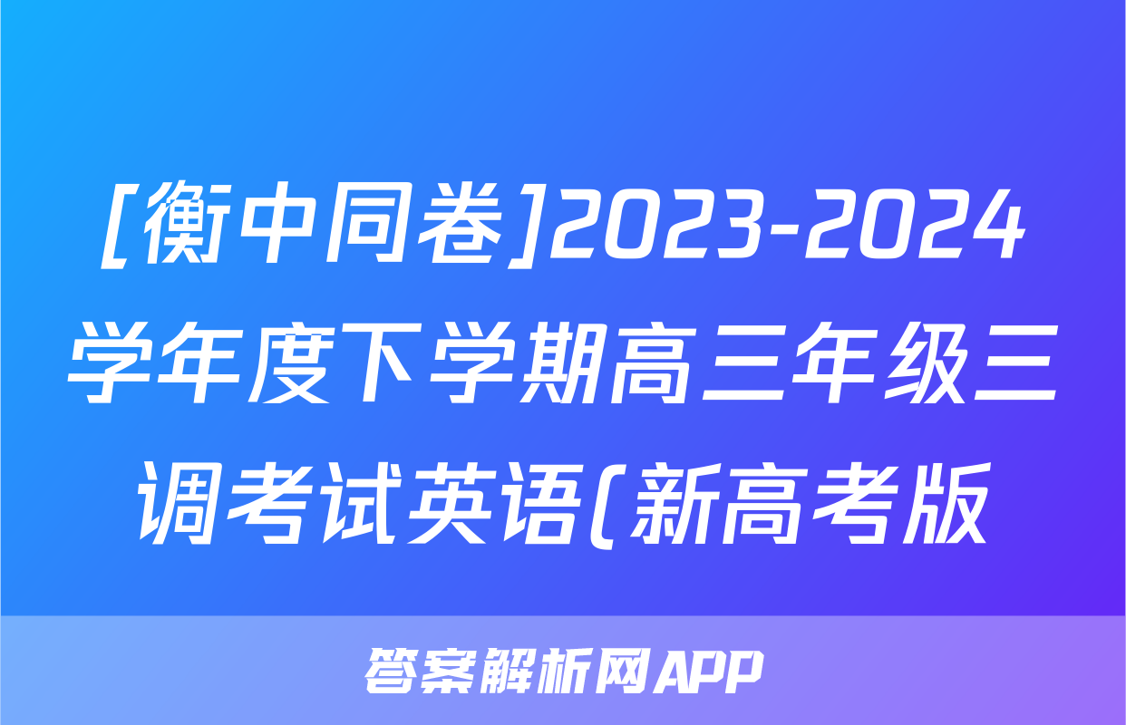 [衡中同卷]2023-2024学年度下学期高三年级三调考试英语(新高考版)试题正在持续更新,目前2026天舟高考答案网为大家整理了相关试题及答案,供大家查缺补漏,高效提升成绩。