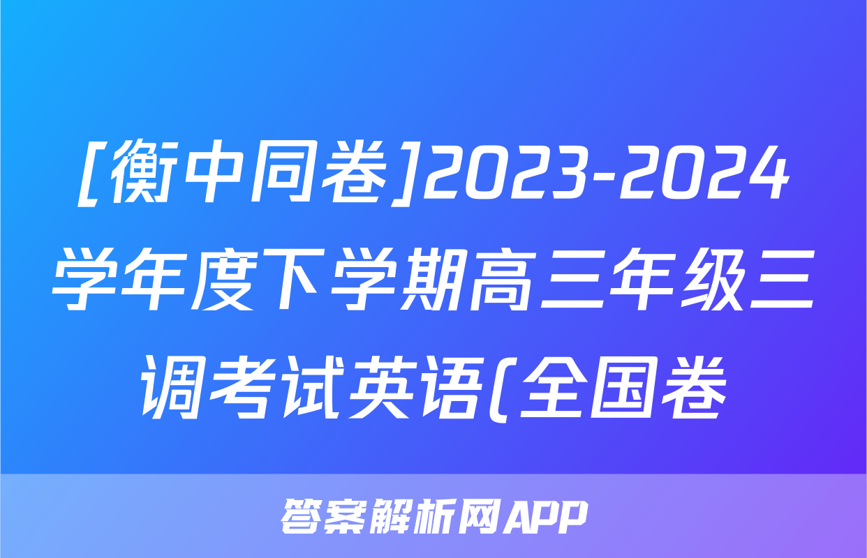 [衡中同卷]2023-2024学年度下学期高三年级三调考试英语(全国卷)试题正在持续更新,目前2026天舟高考答案网为大家整理了相关试题及答案,供大家查缺补漏,高效提升成绩。