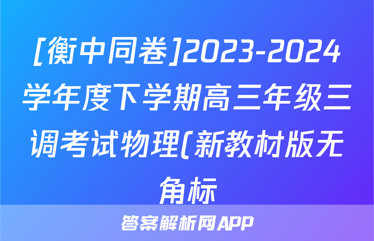 [衡中同卷]2023-2024学年度下学期高三年级三调考试物理(新教材版无角标)答案正在持续更新,目前2026天舟高考答案网为大家整理了相关试题及答案,供大家查缺补漏,高效提升成绩。