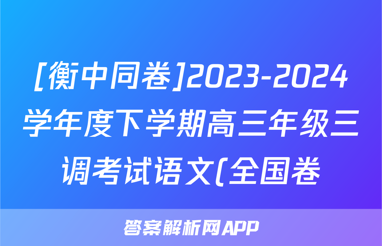 [衡中同卷]2023-2024学年度下学期高三年级三调考试语文(全国卷)答案正在持续更新,目前2026天舟高考答案网为大家整理了相关试题及答案,供大家查缺补漏,高效提升成绩。