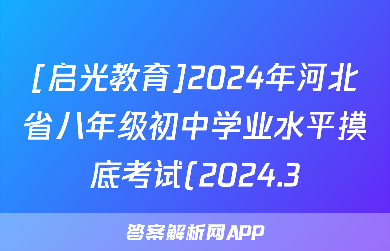 [启光教育]2024年河北省八年级初中学业水平摸底考试(2024.3)道德与法治试题正在持续更新,目前2026天舟高考答案网为大家整理了相关试题及答案,供大家查缺补漏,高效提升成绩。