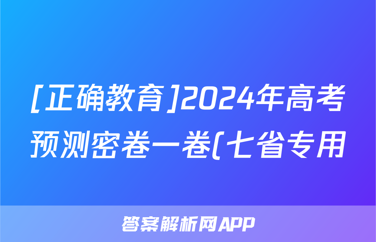 [正确教育]2024年高考预测密卷一卷(七省专用)化学(七省)答案正在持续更新,目前2026天舟高考答案网为大家整理了相关试题及答案,供大家查缺补漏,高效提升成绩。