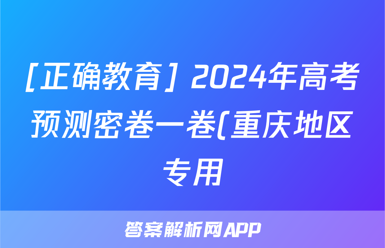 [正确教育] 2024年高考预测密卷一卷(重庆地区专用)历史试题正在持续更新,目前2026天舟高考答案网为大家整理了相关试题及答案,供大家查缺补漏,高效提升成绩。