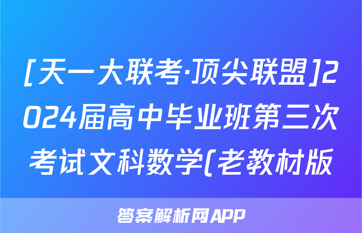 [天一大联考·顶尖联盟]2024届高中毕业班第三次考试文科数学(老教材版)试题正在持续更新,目前2026天舟高考答案网为大家整理了相关试题及答案,供大家查缺补漏,高效提升成绩。