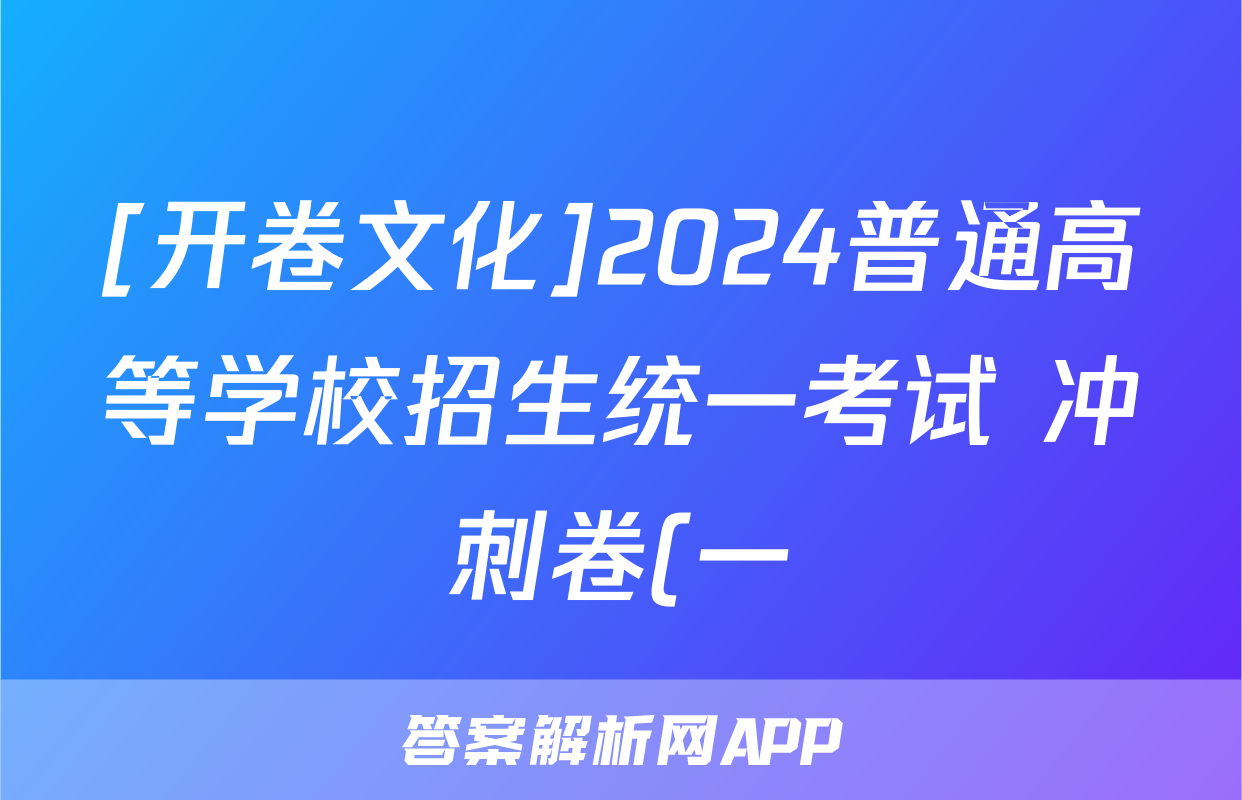 [开卷文化]2024普通高等学校招生统一考试 冲刺卷(一)1生物(A)答案正在持续更新,目前2026天舟高考答案网为大家整理了相关试题及答案,供大家查缺补漏,高效提升成绩。