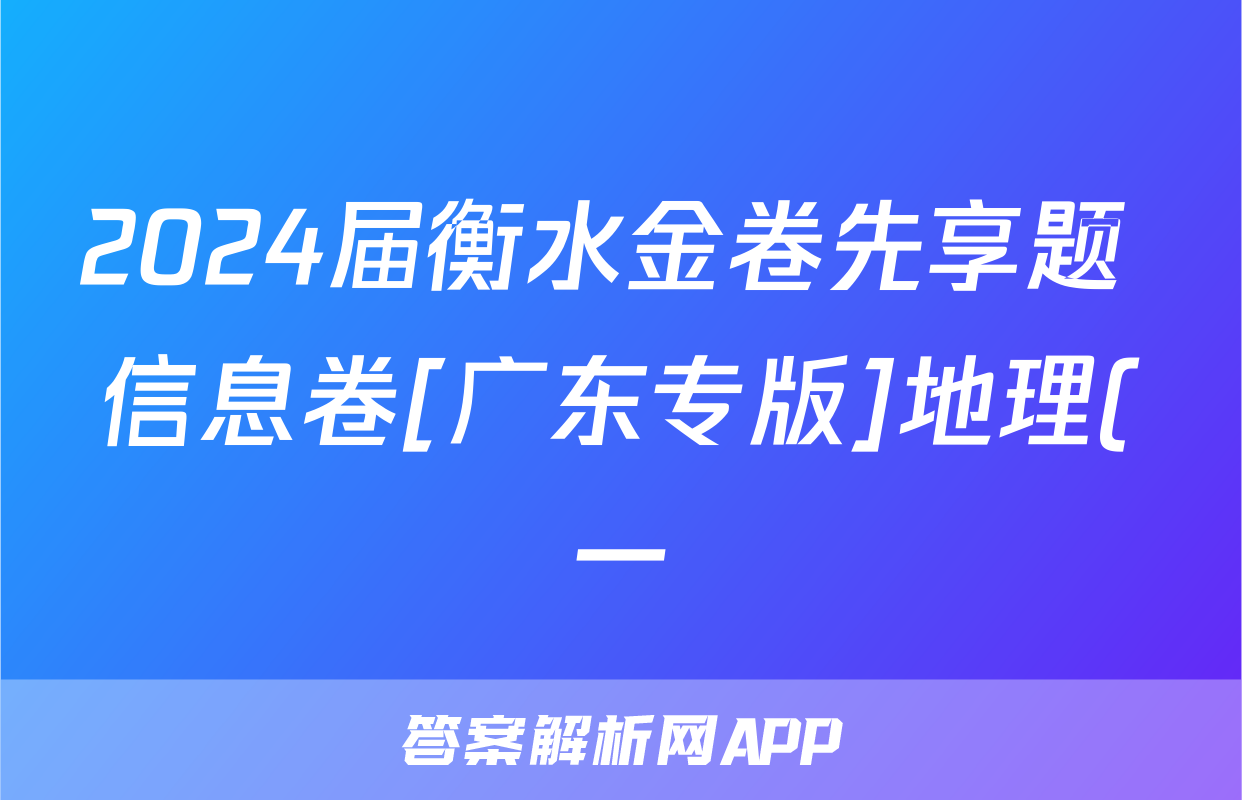 2024届衡水金卷先享题 信息卷[广东专版]地理(一)1答案正在持续更新,目前2026天舟高考答案网为大家整理了相关试题及答案,供大家查缺补漏,高效提升成绩。