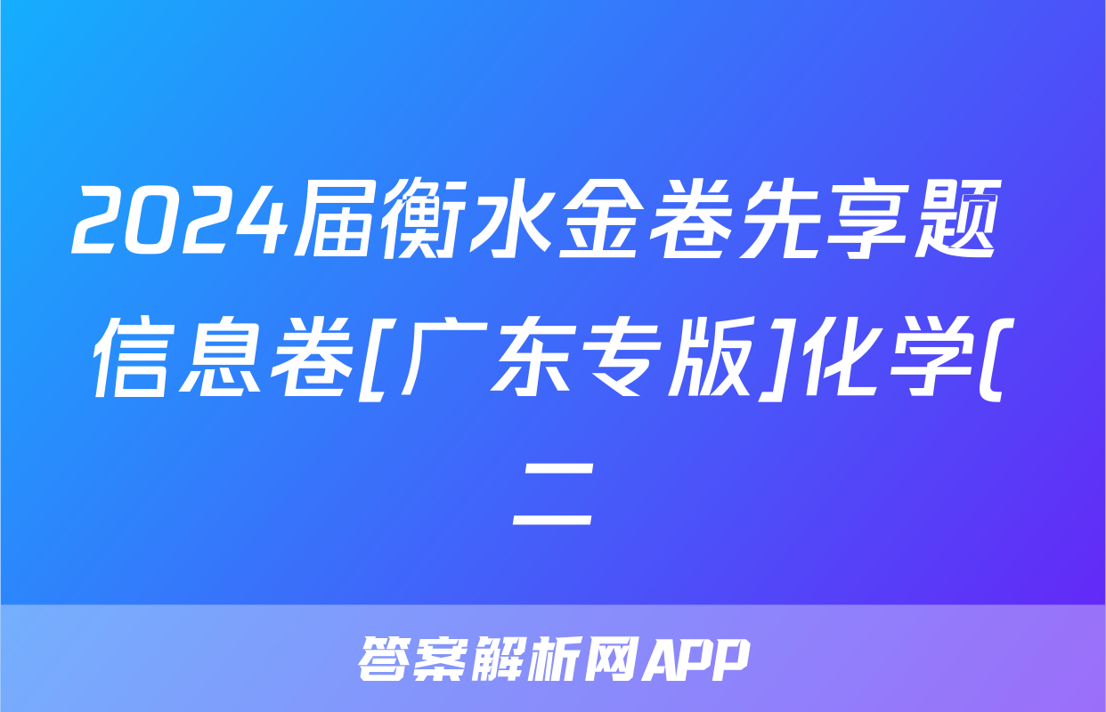 2024届衡水金卷先享题 信息卷[广东专版]化学(二)2答案正在持续更新,目前2026天舟高考答案网为大家整理了相关试题及答案,供大家查缺补漏,高效提升成绩。