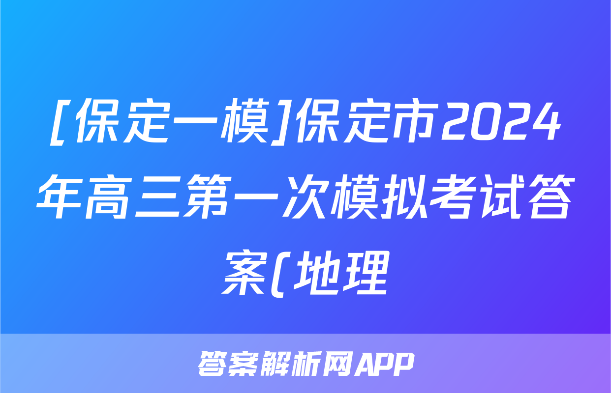 [保定一模]保定市2024年高三第一次模拟考试答案(地理)正在持续更新,目前2026天舟高考答案网为大家整理了相关试题及答案,供大家查缺补漏,高效提升成绩。