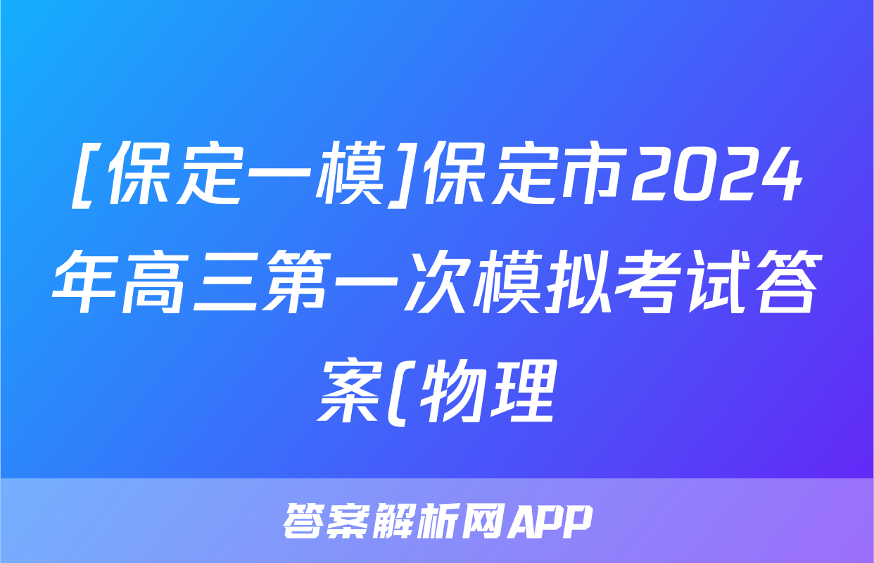 [保定一模]保定市2024年高三第一次模拟考试答案(物理)正在持续更新,目前2026天舟高考答案网为大家整理了相关试题及答案,供大家查缺补漏,高效提升成绩。