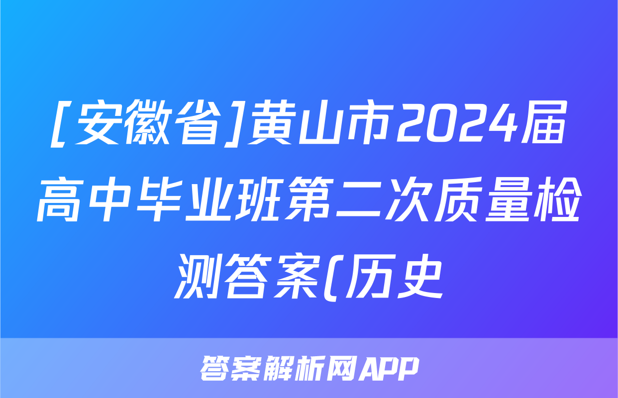 [安徽省]黄山市2024届高中毕业班第二次质量检测答案(历史)正在持续更新,目前2026天舟高考答案网为大家整理了相关试题及答案,供大家查缺补漏,高效提升成绩。