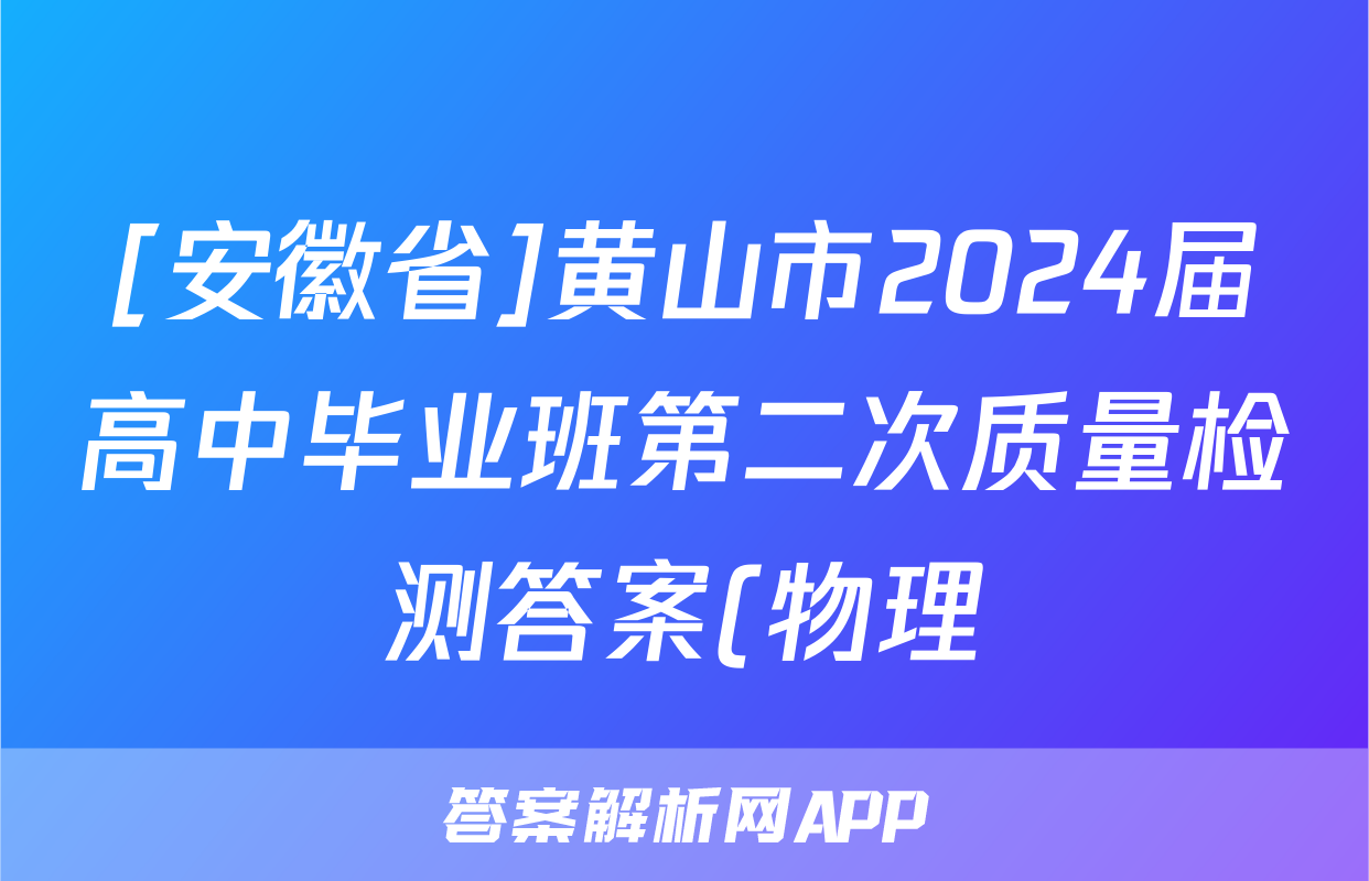 [安徽省]黄山市2024届高中毕业班第二次质量检测答案(物理)正在持续更新,目前2026天舟高考答案网为大家整理了相关试题及答案,供大家查缺补漏,高效提升成绩。