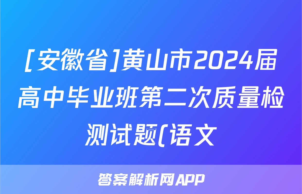 [安徽省]黄山市2024届高中毕业班第二次质量检测试题(语文)正在持续更新,目前2026天舟高考答案网为大家整理了相关试题及答案,供大家查缺补漏,高效提升成绩。