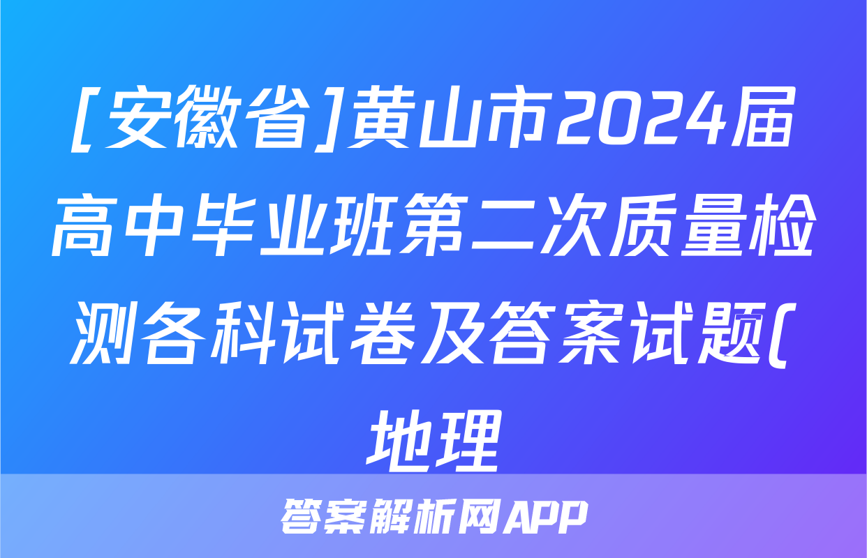 [安徽省]黄山市2024届高中毕业班第二次质量检测各科试卷及答案试题(地理)正在持续更新,目前2026天舟高考答案网为大家整理了相关试题及答案,供大家查缺补漏,高效提升成绩。