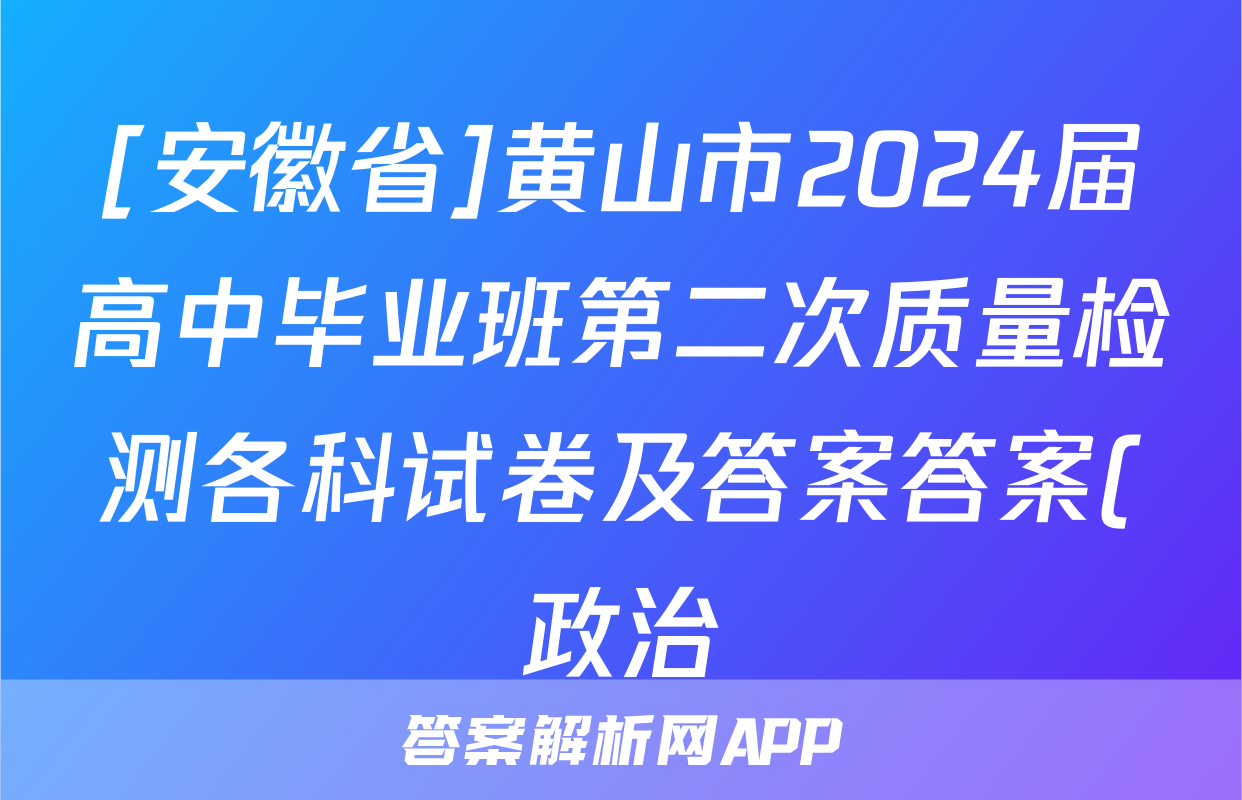 [安徽省]黄山市2024届高中毕业班第二次质量检测各科试卷及答案答案(政治)正在持续更新,目前2026天舟高考答案网为大家整理了相关试题及答案,供大家查缺补漏,高效提升成绩。