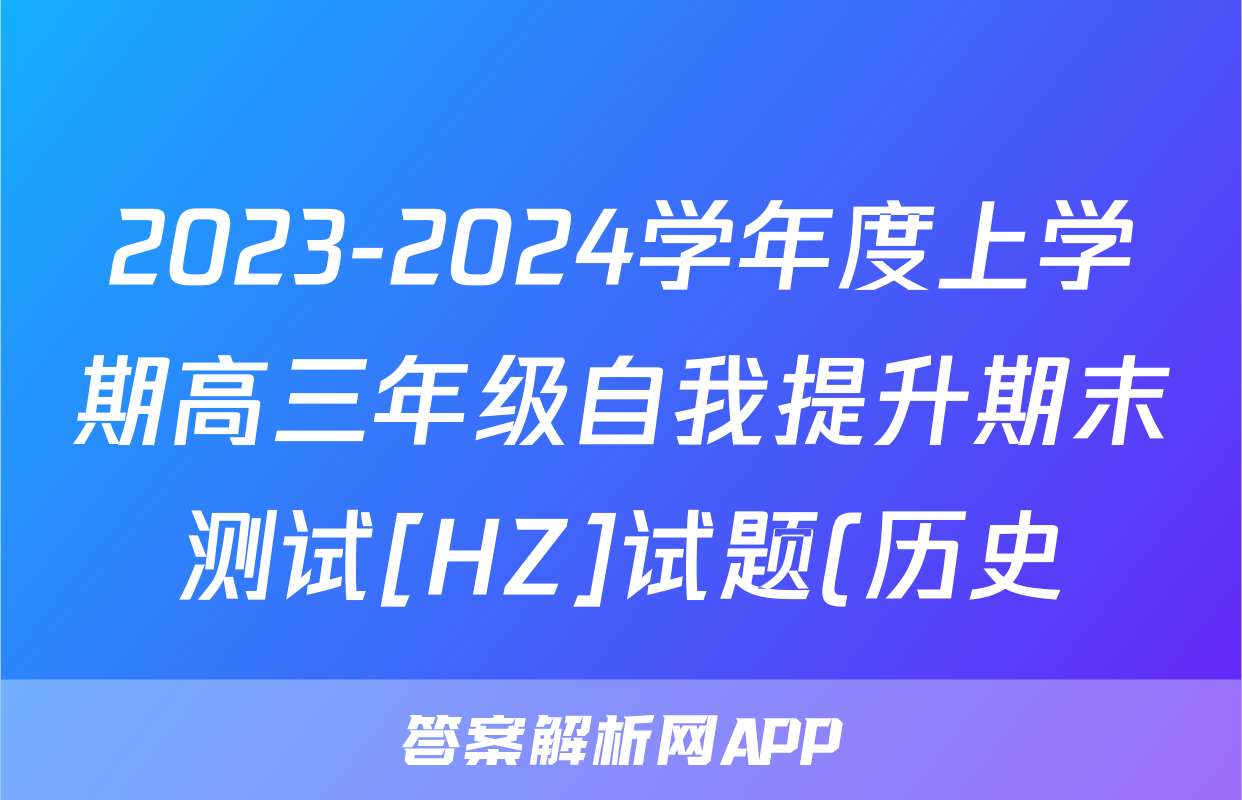 2023-2024学年度上学期高三年级自我提升期末测试[HZ]试题(历史)正在持续更新,目前2026天舟高考答案网为大家整理了相关试题及答案,供大家查缺补漏,高效提升成绩。