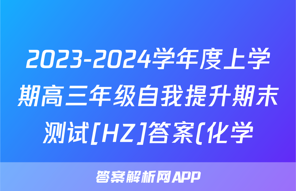 2023-2024学年度上学期高三年级自我提升期末测试[HZ]答案(化学)正在持续更新,目前2026天舟高考答案网为大家整理了相关试题及答案,供大家查缺补漏,高效提升成绩。