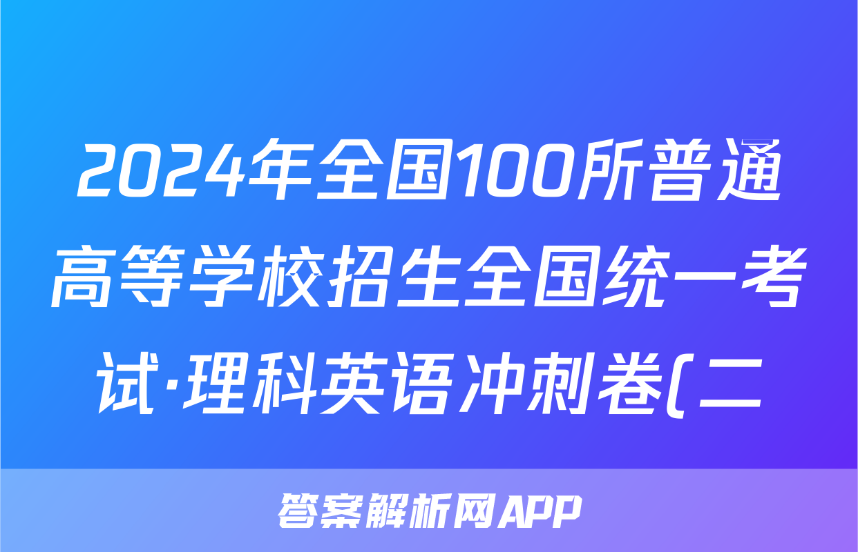 2024年全国100所普通高等学校招生全国统一考试·理科英语冲刺卷(二)2[24·CCJ·英语理科·Y]试题正在持续更新,目前2026天舟高考答案网为大家整理了相关试题及答案,供大家查缺补漏,高效提升成绩。