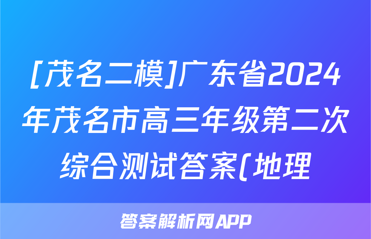 [茂名二模]广东省2024年茂名市高三年级第二次综合测试答案(地理)正在持续更新,目前2026天舟高考答案网为大家整理了相关试题及答案,供大家查缺补漏,高效提升成绩。