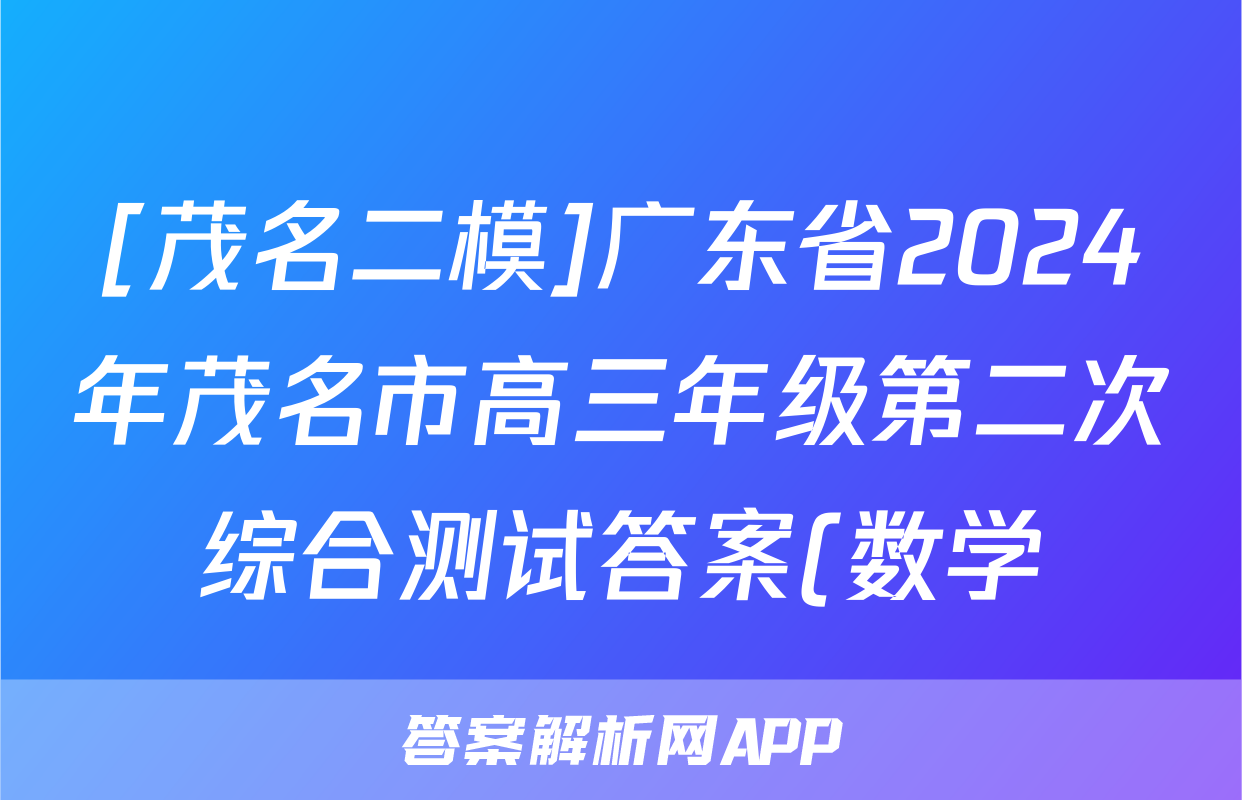 [茂名二模]广东省2024年茂名市高三年级第二次综合测试答案(数学)正在持续更新,目前2026天舟高考答案网为大家整理了相关试题及答案,供大家查缺补漏,高效提升成绩。