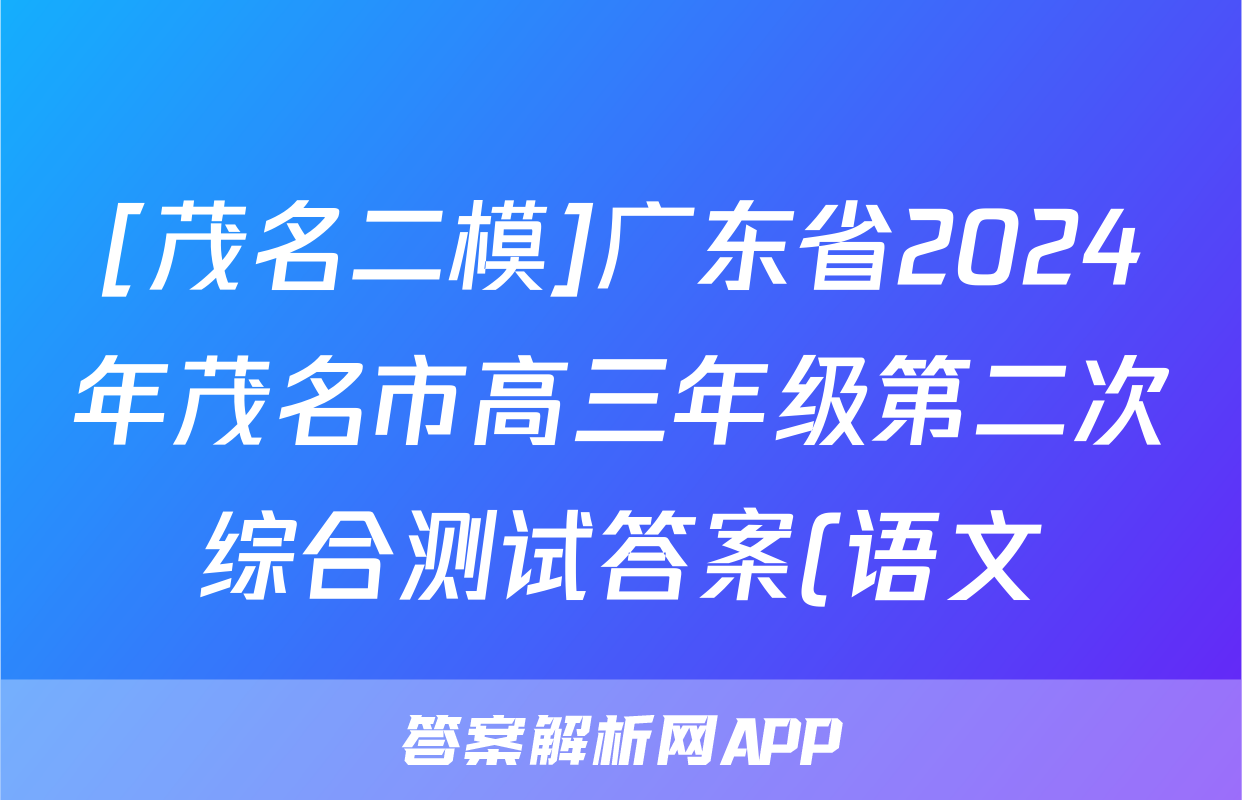 [茂名二模]广东省2024年茂名市高三年级第二次综合测试答案(语文)正在持续更新,目前2026天舟高考答案网为大家整理了相关试题及答案,供大家查缺补漏,高效提升成绩。