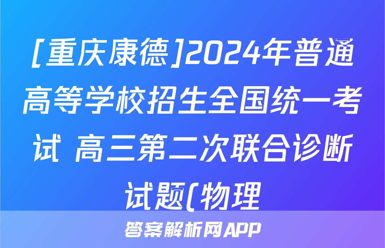 [重庆康德]2024年普通高等学校招生全国统一考试 高三第二次联合诊断试题(物理)正在持续更新,目前2026天舟高考答案网为大家整理了相关试题及答案,供大家查缺补漏,高效提升成绩。