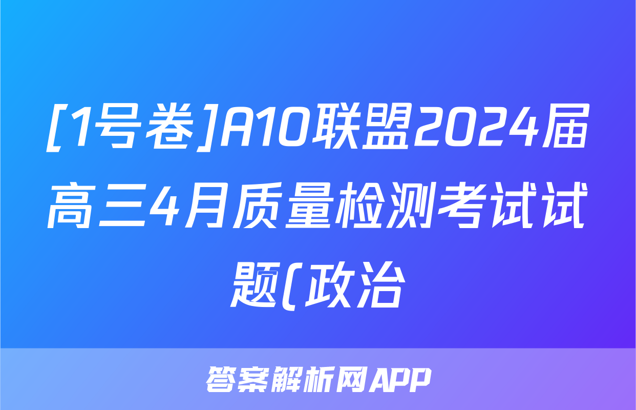 [1号卷]A10联盟2024届高三4月质量检测考试试题(政治)正在持续更新,目前2026天舟高考答案网为大家整理了相关试题及答案,供大家查缺补漏,高效提升成绩。