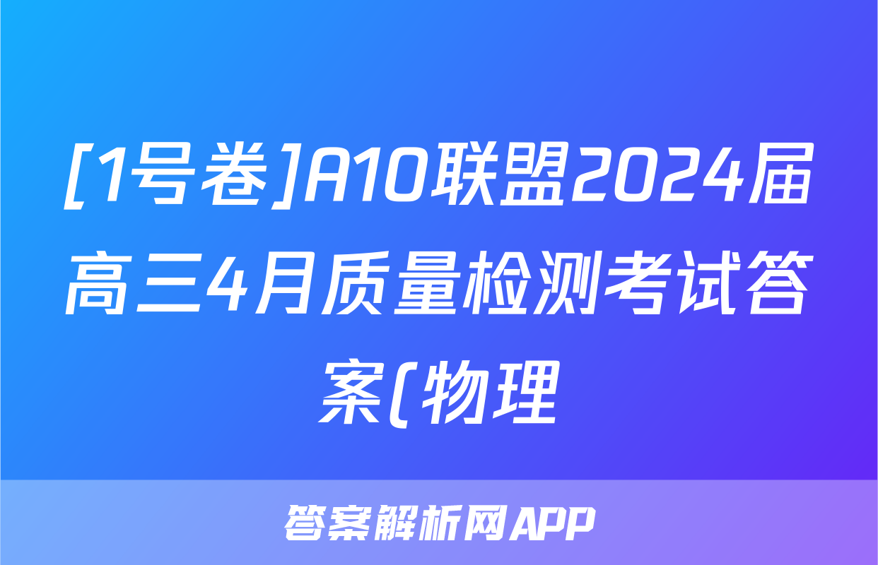 [1号卷]A10联盟2024届高三4月质量检测考试答案(物理)正在持续更新,目前2026天舟高考答案网为大家整理了相关试题及答案,供大家查缺补漏,高效提升成绩。