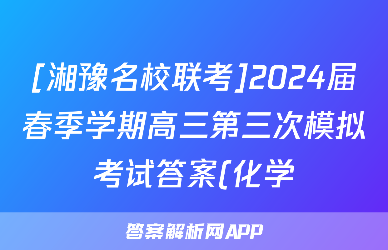 [湘豫名校联考]2024届春季学期高三第三次模拟考试答案(化学)正在持续更新,目前2026天舟高考答案网为大家整理了相关试题及答案,供大家查缺补漏,高效提升成绩。