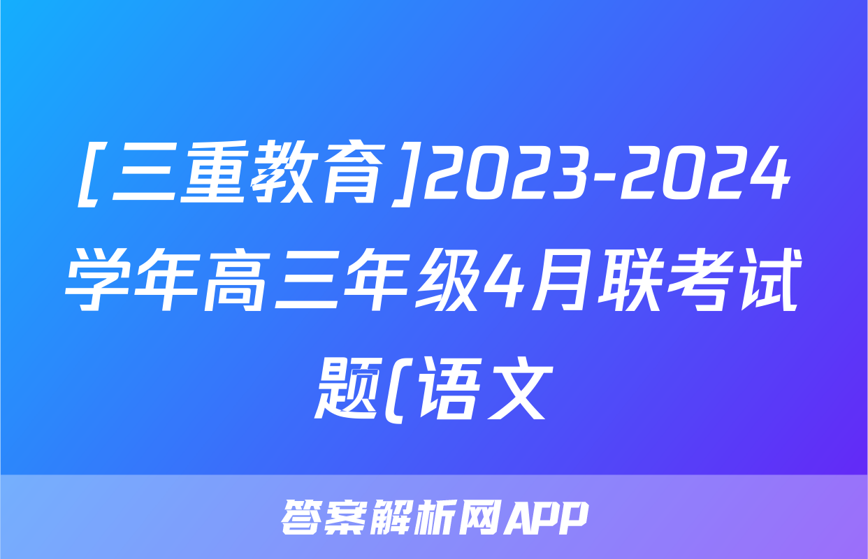 [三重教育]2023-2024学年高三年级4月联考试题(语文)正在持续更新,目前2026天舟高考答案网为大家整理了相关试题及答案,供大家查缺补漏,高效提升成绩。