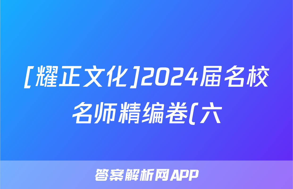[耀正文化]2024届名校名师精编卷(六)6答案(政治)正在持续更新,目前2026天舟高考答案网为大家整理了相关试题及答案,供大家查缺补漏,高效提升成绩。